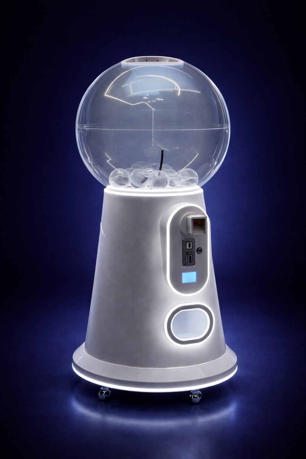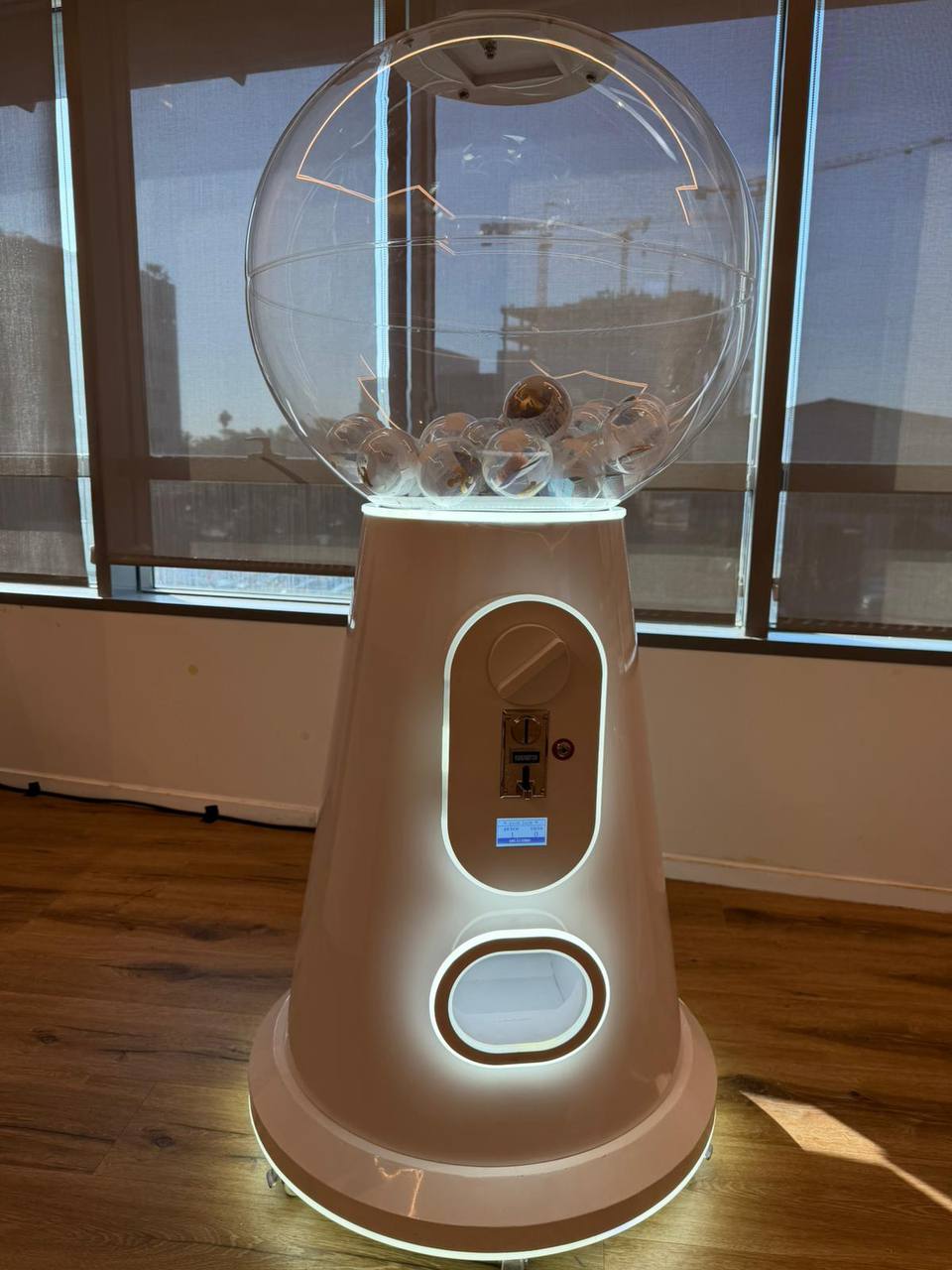 רוצים למשוך יותר לקוחות לביתן שלכם בכנס? מחפשים דרך מקורית לחלק מתנות לעובדים? הכירו את מכונת הכדורים הענקית שלנו. זוהי גרסה עתידנית ומרשימה של מכונת המסטיקים הנוסטלגית, המעוצבת במיוחד ליצירת אינטראקציה והתרגשות באירועים. המכונה מוארת בתאורת LED יוקרתית ומושכת את העין מרחוק.