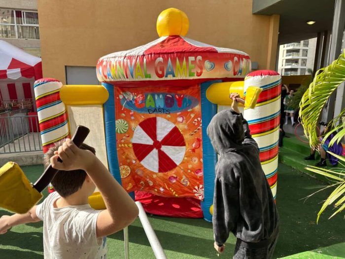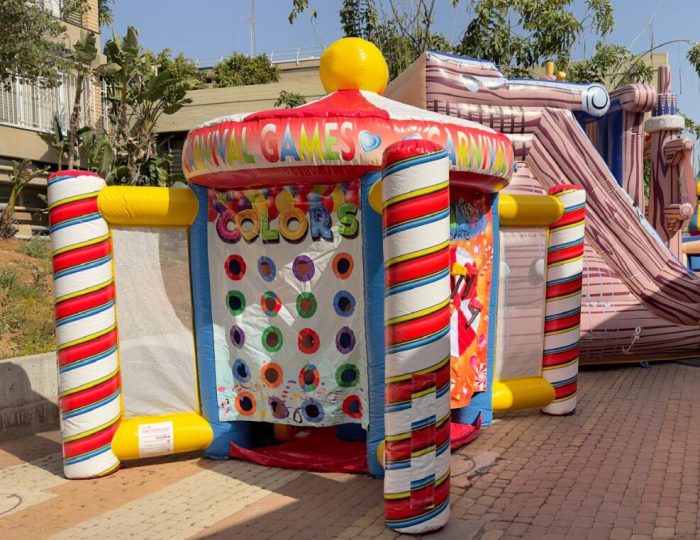 מחפשים מתקן מתנפח ייחודי לאירוע? מתנפח יריד 360 להשכרה הוא מתחם קרנבל צבעוני הכולל 4 משחקי יריד שונים מסביב למבנה אחד מרכזי. אטרקציה מושלמת לימי הולדת, אירועי חברה, בתי ספר, קייטנות, פסטיבלים וירידים. חוויה תחרותית, מגבשת ומלאת אנרגיה לכל הגילאים.